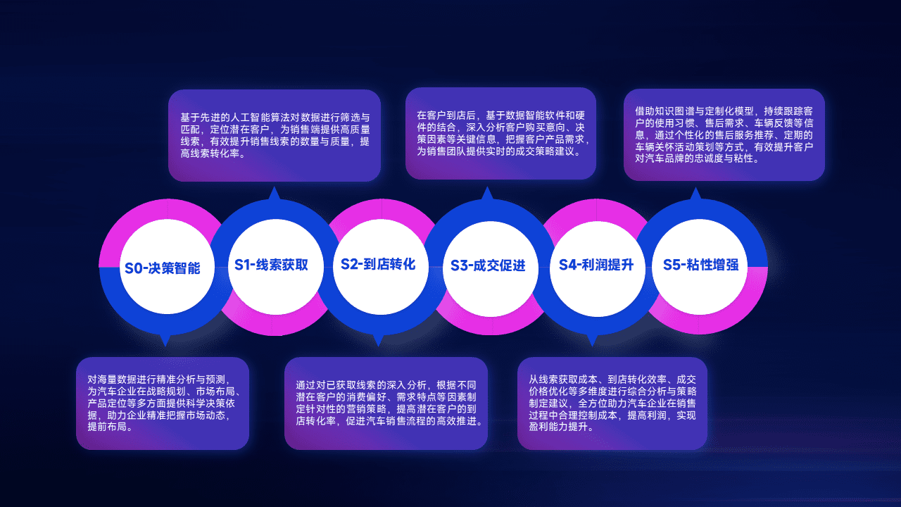 通过拓宽潜在客户来源、、优化线索分配并提高到店转化率,,以增强销售效率。。。。同时,,,,利用线索数据不断优化分析模型,,有效提升转化率,,,扩大营销影响力。。。。